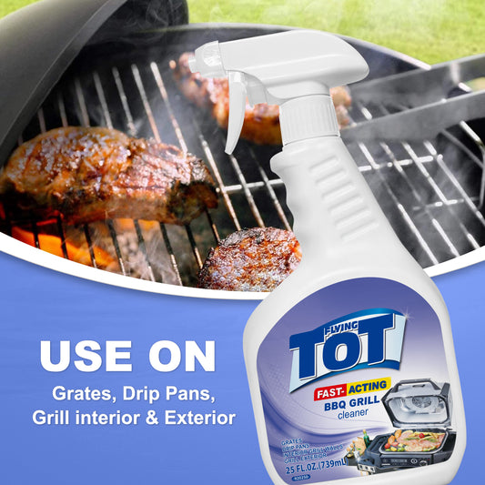 FLYING TOT Grill and Grate Cleaner - Cleans and Degreases BBQ Cooking Grates and Racks, Pellet and Electric Smokers- 25 Fl. Oz.