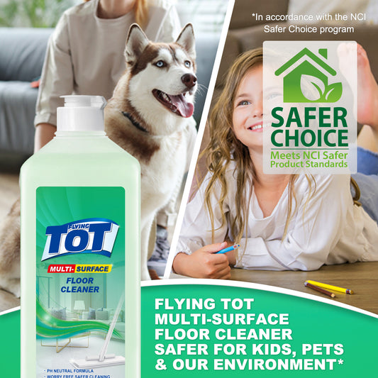 FLYING TOT Multi Surface Floor Cleaner 35oz | Ready to Use, Dirt Dissolving, Streak Free, No Rinse | Use on Hardwood, Laminate, Luxury Vinyl Plank LVT, Tile & Stone | Safer Choice Cleaner