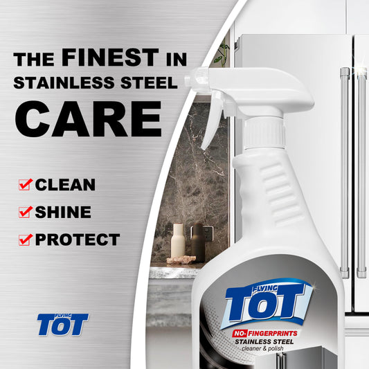 FLYING TOT Stainless Steel Cleaner and Polish - Streak-Free Self- Polishing Formula, Removes Fingerprints, Residue, Water Marks and Grease from Appliances - 25 Fl. Oz.