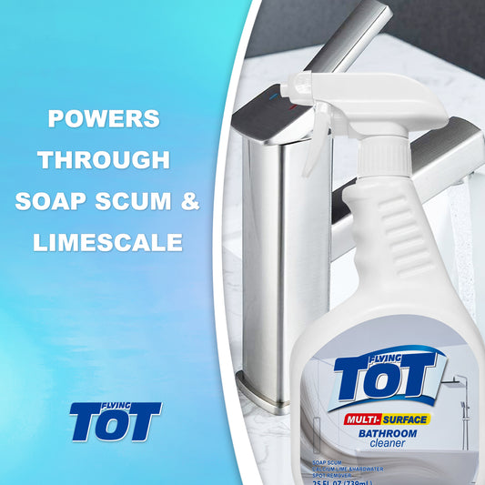 FLYING TOT Bathroom Cleaner - Soap Scum Remover Shower Glass Door Cleaner Works on Ceramic Tile, Chrome, Plastic and More, Removes 100% Soap Scum, Rainshower Scent - 25 Fl. Oz.