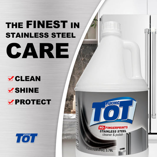 FLYING TOT Stainless Steel Cleaner and Polish - Streak-Free Self- Polishing Formula, Removes Fingerprints, Residue, Water Marks and Grease from Appliances - 1 Gallon